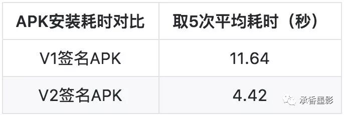 差不多 2.x 倍的差距,v2 签名对 APK 的安装效率上还是有不少提升的。