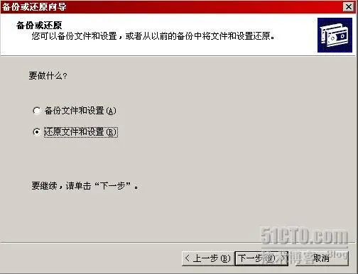 备份复制到新服务器,在新服务器上运行备份工具,如下图,选择“还原文件和设置”