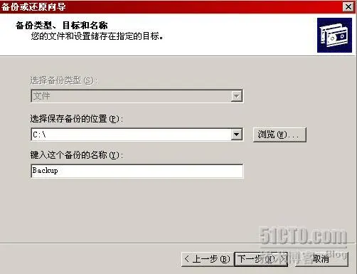 选择备份存储的介质,由于在虚拟机上无法使用磁带,我们选择将备份保存在