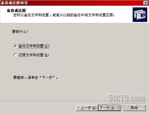 自带的备份工具,开始-程序-附件-系统工具-备份,以默认的向导模式启动,如下图所示,选择“备份文件和设置”