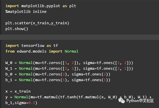 是吧,跟段子一般的简单。接下来我们从数据反怼出模型,用边分推理对权重和偏差指定正态近似。
