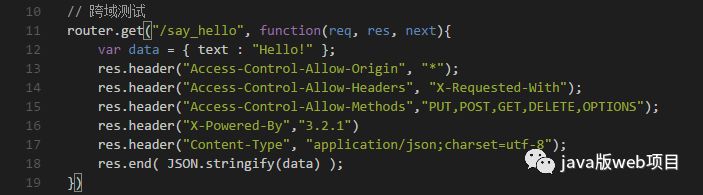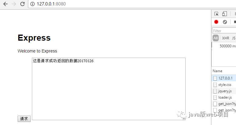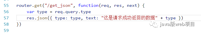 location配置的意思是对包含 “cross_origin” 请求拦截,并对请求路径进行重写,一开始请求路径是 “/cross_origin/get_json?type=20170126” ,重写后便成了 “/get_json?type=20170126”,$1代表(.*)中的内容,而(.*)则代表 cross_origin 后面的全部字符,也就是我们会把 cross_origin 部分去掉,但是保留 cross_origin 之后的所有字符,当然这一步并非是绝对必要的。接下来我们再把请求代理到 3000 端口所对应的资源服务,所以请求路径从一开始的 “127.0.0.1:8080/cross_origin/get_json?type=20170126” 经过代理服务器Nginx之后变成了 “127.0.0.1:3000/get_json?type=20170126”。在 “127.0.0.1:3000” 下存在对应的接口:
