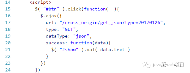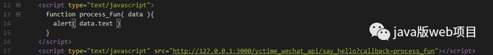 script标签跨域发起get请求,同时传递在客户端已经注册的全局函数 process_fun 作为查询参数,服务端代码提取查询参数,并传入需要返回的数据。script标签还有一个特点,就是会立即执行调用所请求到的资源,所以这个时候服务端返回的 process_fun(data) 这一句代码会被立即执行,即把数据 data 传入我们事先定义好的函数 process_fun 中执行进一步的处理。
