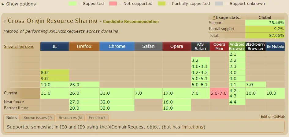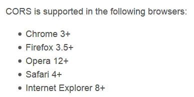 CORS浏览器支持情况如下图: