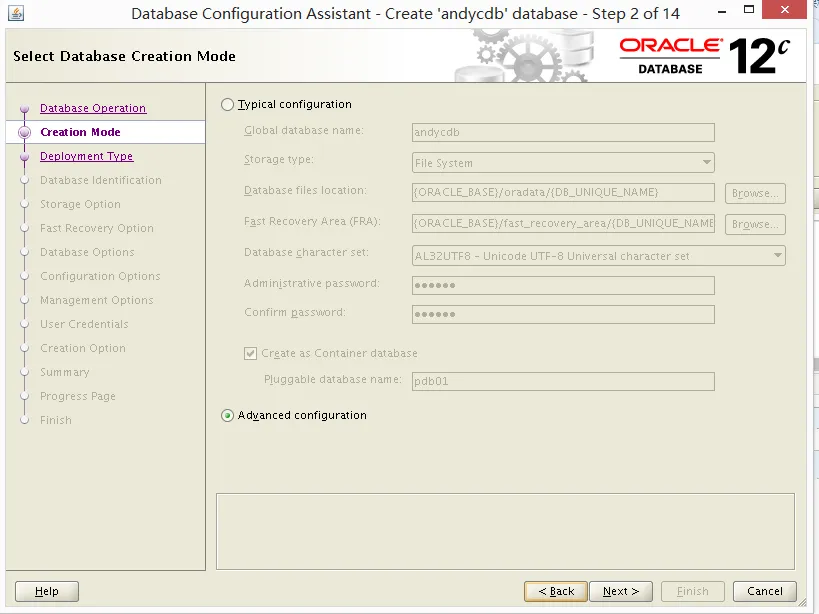 dbca 建库。