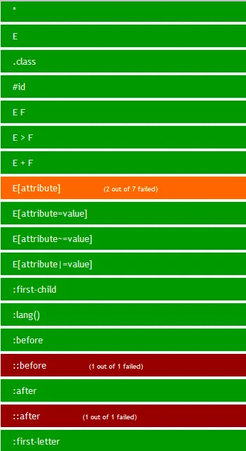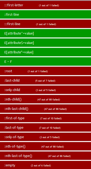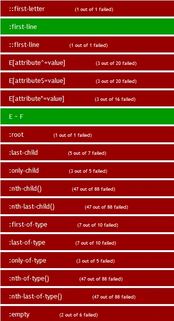 在css3.info网站上面可以测试当前浏览器对CSS选择器的兼容程度。测试不包括:hover,:active, :focus,:selection,:visited,:link。