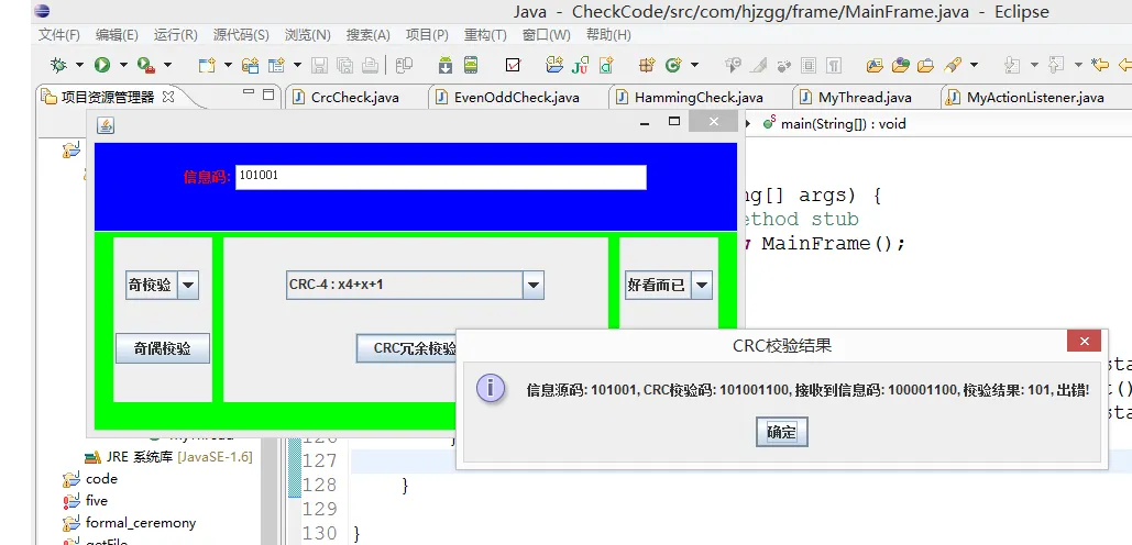 CRC码利用生成多项式为k个数据位产生r个校验位进行编码,其编码长度为n=k+r所以又称 (n,k)码. CRC码广泛应用于数据通信领域和磁介质存储系统中. CRC理论非常复杂,一般书就给个例题,讲讲方法.现在简单介绍下它的原理: