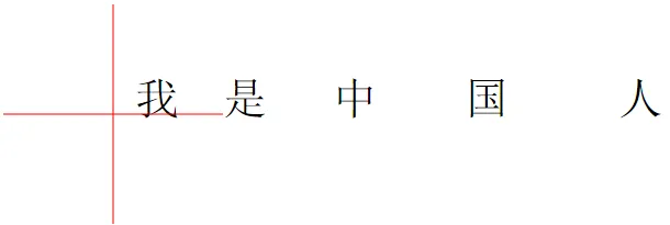 <svg width="100%" height="100%" version="1.1" xmlns="http://www.w3.org/2000/svg"> <text x="100" y="100" dx="20 40 60 80 100" fill="black" style="font-size:40px;">我是中国人</text> <path d="M100,0 V200 M0,100 H200" stroke="red"/> </svg>