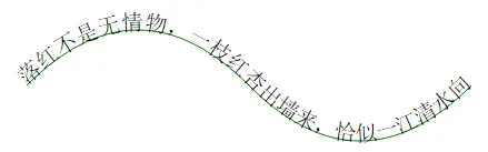 <svg width="100%" height="100%" version="1.1" xmlns="http://www.w3.org/2000/svg"> <path id="p1" d="M100,200 Q200 100 300 200 T 500 200" stroke="green" fill="none"/> <text style="font-size:20px;"> <textPath xlink:href="#p1">落红不是无情物,一枝红杏出墙来,恰似一江清水向东流。</textPath> </text> </svg>