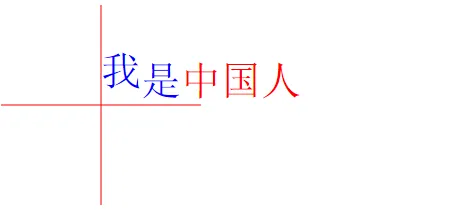 <svg width="100%" height="100%" version="1.1" xmlns="http://www.w3.org/2000/svg"> <text x="100" y="100" dy="100" fill="black" style="font-size:40px;"> <tspan fill="blue" dy="-20 10">我是</tspan><tspan fill="red">中国人</tspan> </text> <path d="M100,0 V200 M0,100 H200" stroke="red"/> </svg>