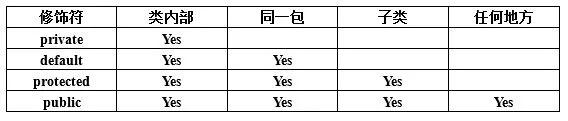 简单地描述一下表中的内容:用private 修饰的成员变量只能在类内部访问;用default修饰的成员变量可以再内部访问,也可以被同个包(同一目录)中的类访问;default修饰的成员变量既可以在类内部访问,又可以被同个包中的类访问,还能被子类访问;public可以被任何地方的类访问。