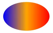 <svg width="100%" height="100%" version="1.1" xmlns="http://www.w3.org/2000/svg"> <defs> <linearGradient id="orange_red" x1="0%" y1="0%" x2="100%" y2="0%"> <stop offset="0%" stop-color="blue"/> <stop offset="50%" stop-color="orange"/> <stop offset="100%" stop-color="red"/> </linearGradient> </defs> <ellipse cx="200" cy="190" rx="80" ry="50" style="fill:url(#orange_red)"/> </svg>