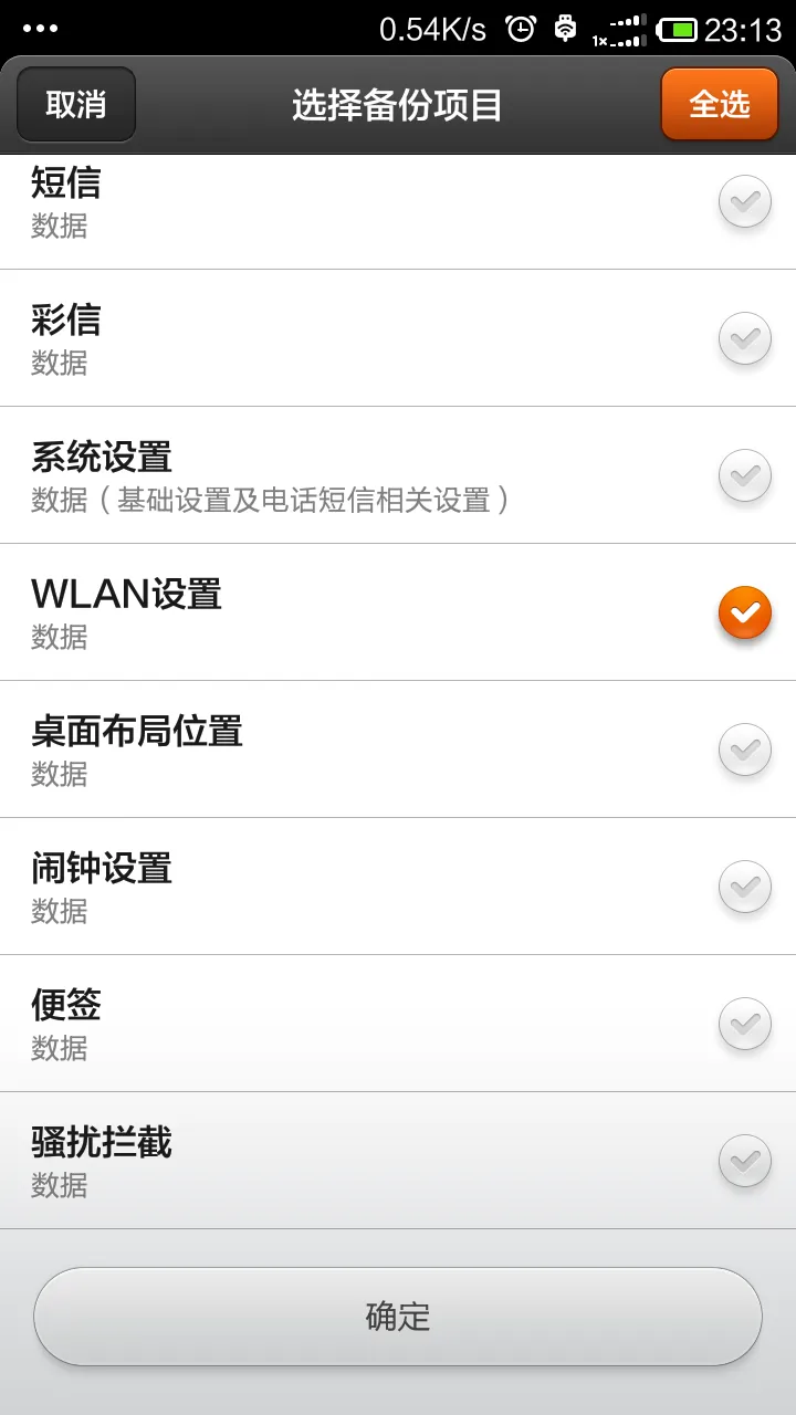 只需选择备份WIFI相关的选项。