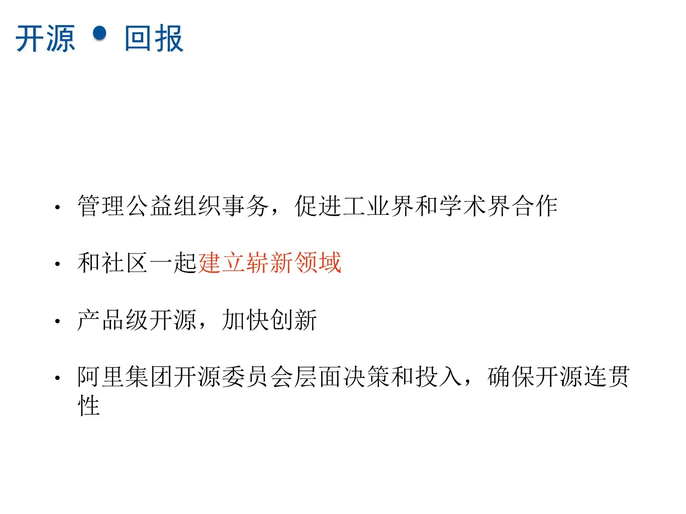 最后一点,开源是非常重要的,需要从公司层面去决策。就像生孩子容易养孩子难,需要大量人力财力的投入。所以我们会从公司层面投入,来保证开源业务的连贯性,让社区更好。