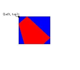 命中测试问题用FastHitTest类来解决,初始化时创建一个选定区域的外接矩形大小的位图,并记录矩形的左上坐标,然后将位图先全部涂成指定的背景色,然后在选定的区域中涂上用指定的前景色。判定的时候,只要检查这个位图对应点是否前景色,是则在区域内,否则在区域外。在外接矩形外的点不需要判断了,直接否定。在FastHitTest,记录了三种区域,如图中白色区域为外接矩形外的区域,通过左上坐标和位图大小来确定;兰色为指定的背景色,为选择区域的外接矩形;红色为指定的前景色,为所选择的区域。空间耗费就为位图所占用的空间,单次区域内判断的时间耗费就仅为查询位图内指定坐标的点的颜色。