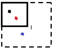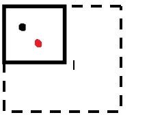 画个图说明一下吧,比如下图里面右下方方块是一个WPF程序里面的一个图片,大小是40 x 40,里面的黑点是预备缩放的原点,假设黑点的坐标是(10, 10),在运行程序的时候,用户首先将方块移动到左边的位置,当然原点(黑点)也移动了,假如这个时候图片移动了50个像素。