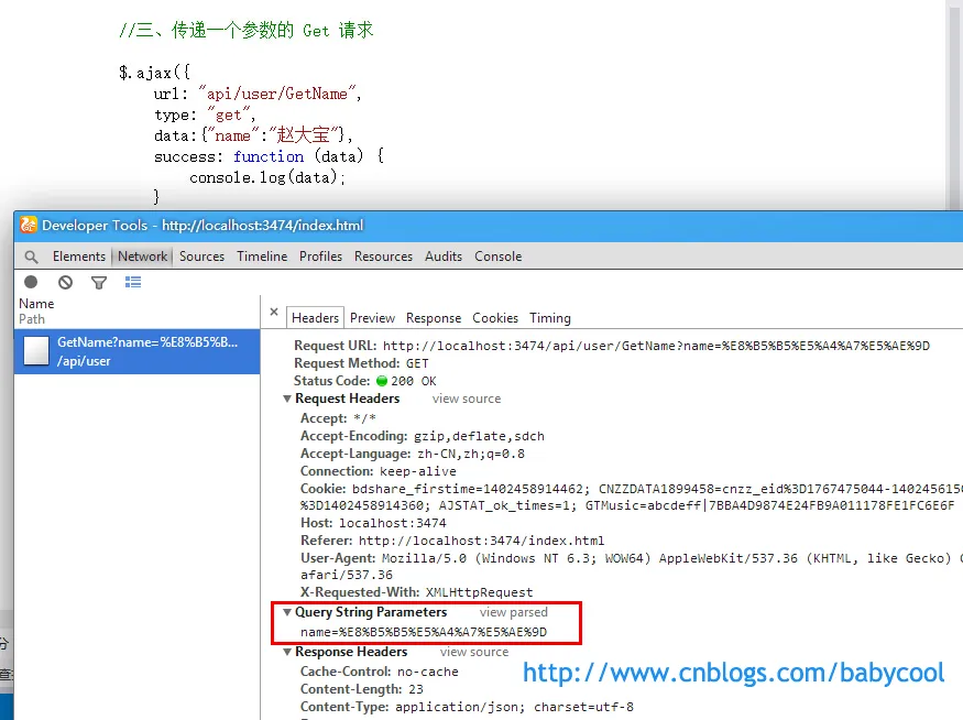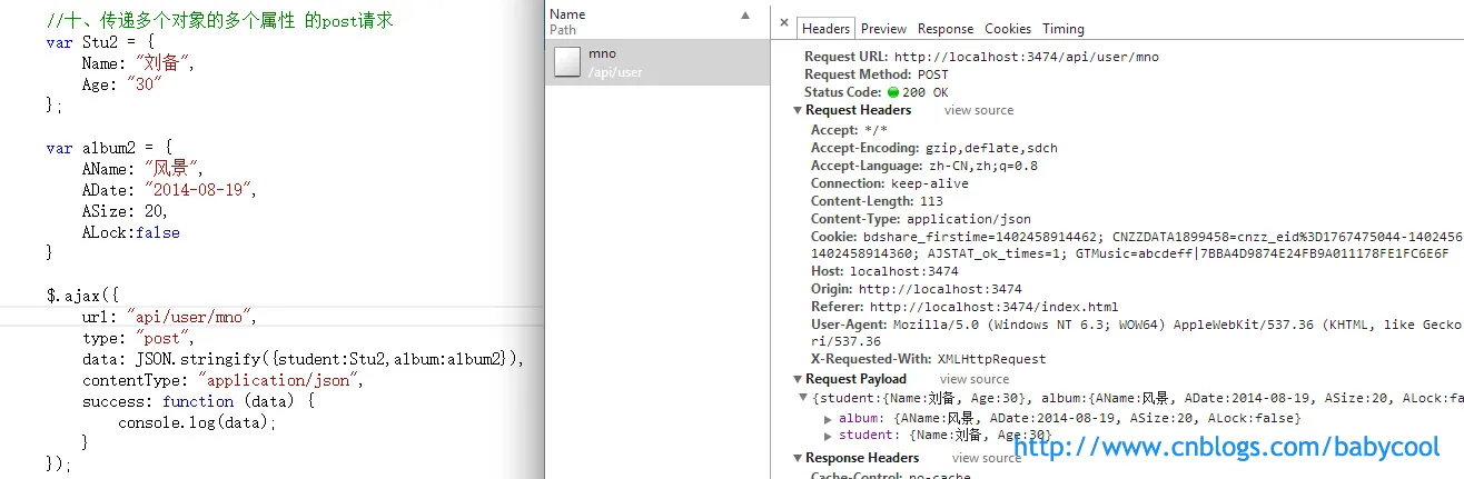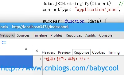 按照上面的方法,对于多个参数我们可以很容易就写出来: data:{"name":"赵大宝","age":12}