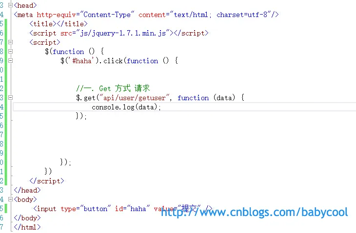 继续使用上一文章中的示例,添加一个index.html页面,添加对jquery的引用。