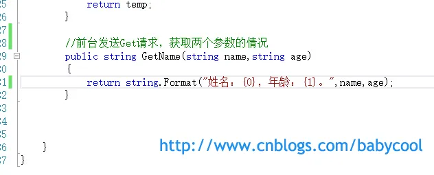 按理说,一个参数的请求实现了,那么传递两个或者多个参数也就很顺利了,对于两个参数的后台接收方法,我们可能会这样来写: