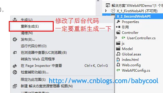 所以,我们只要我们修改了后台代码,就一定要重新生成一下: