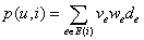 其中,信息流i的边e表示其他用户对信息流i产生行为;E(e)表示和信息流i边的集合;v(e)表示用户v和当前用户u的相似度(熟悉度);w(e)表示边类型的权重;d(e)表示边e的时间衰减参数。