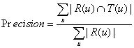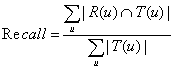 其中,R(u)表示对用户推荐的N个物品,T(u)表示用户u在测试集上喜欢的物品集合。