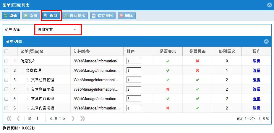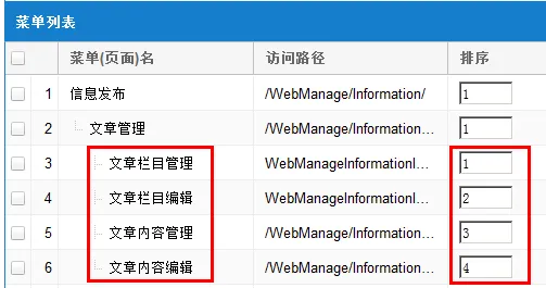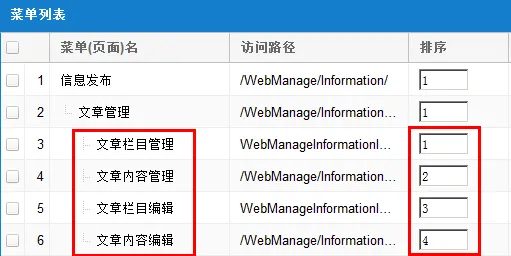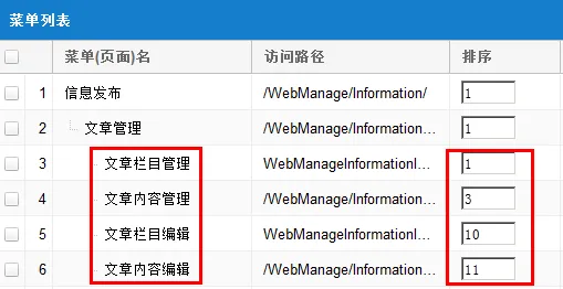 保存排序与自动排序功能(注意观察菜单名称与排序值的变化)