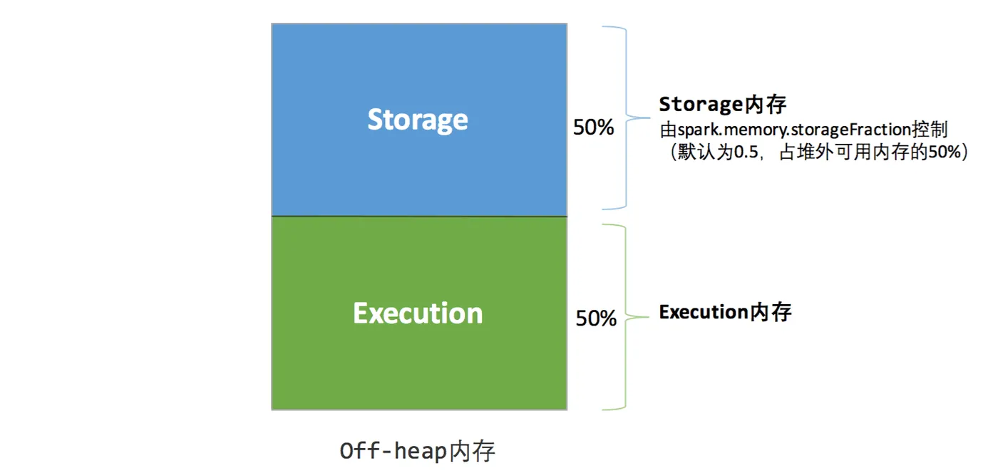 在默认情况下堆外内存并不启用,可通过配置 spark.memory.offHeap.enabled 参数启用,并由 spark.memory.offHeap.size 参数设定堆外空间的大小。除了没有 other 空间,堆外内存与堆内内存的划分方式相同,所有运行中的并发任务共享存储内存和执行内存。