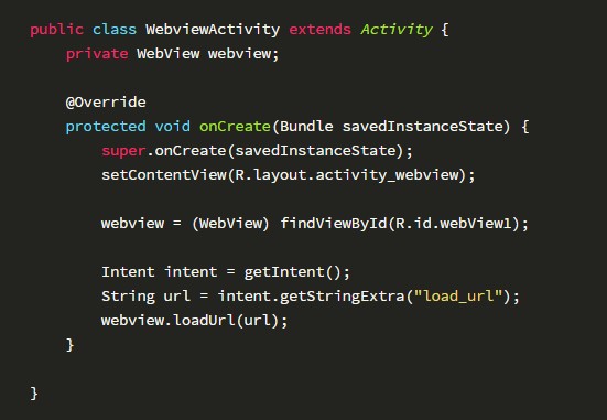接2.1的示例,新建一个WebviewActivity组件,从intent里面获取load_url,然后使用Webview加载url:
