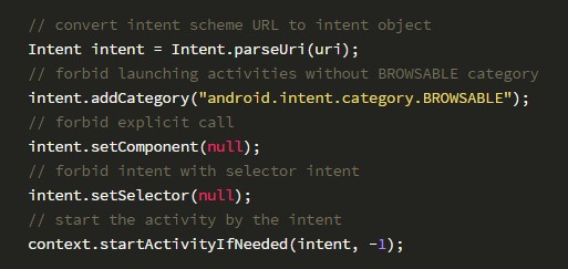 上面两篇文章中都给出了安全使用Intent Scheme URL的方法: