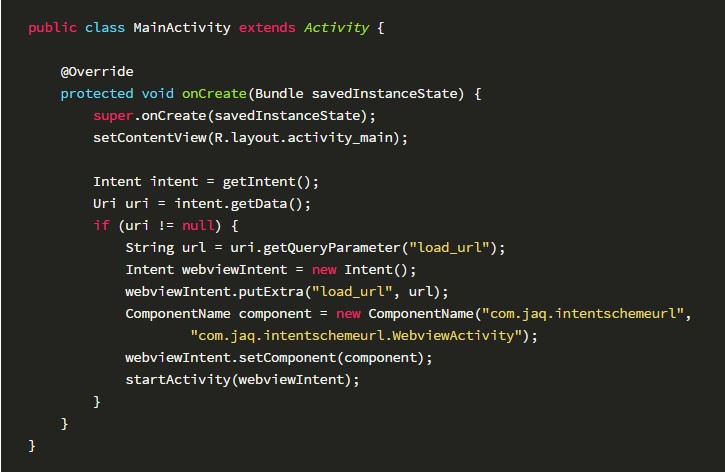 修改MainActivity组件,从网页端的URL中获取load_url参数的值,生成新的intent,并传给WebviewActivity:
