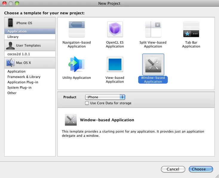 打开XCode,新建一个Window-based Application,项目名称是MusicPlayer: