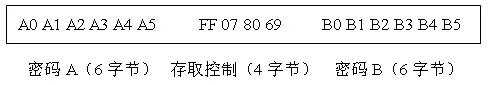 4、每个扇区的块3为控制块,包括了密码A、存取控制、密码B。具体结构如下:
