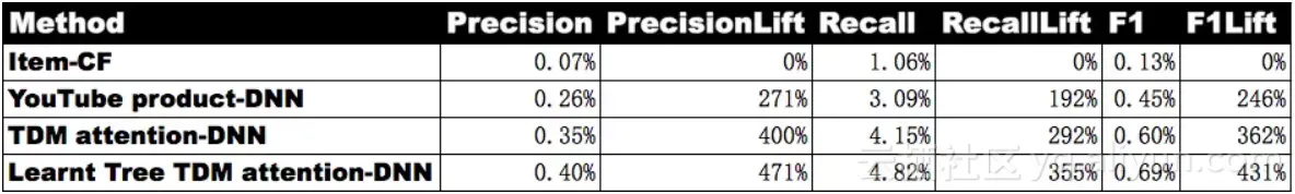 2)在基础product-DNN版本上引入更复杂和先进的深度模型(节点Embedding进入输入层和引入Attention)可以进一步大幅提升召回率。