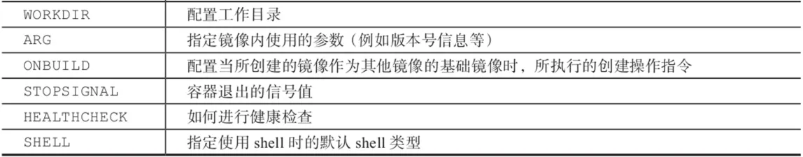 配置当所创建的镜像作为其他镜像的基础镜像时,所执行的创建操作指令。格式为ONBUILD [INSTRUCTION]。