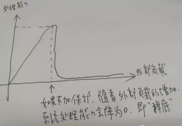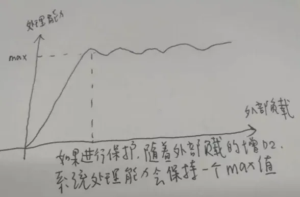 图示:无过载保护的负载与处理能力图(会掉底)