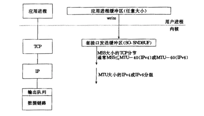 (1)应用程序write写入的字节大小大于套接口发送缓冲区大小;