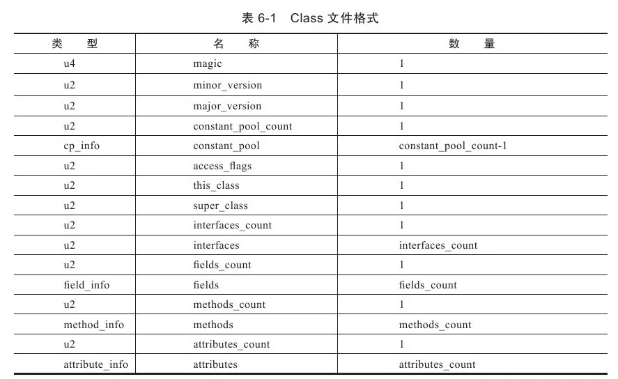根据Java虚拟机规范的规定,Class文件格式采用一种类似于C语言结构体的伪结构来存储数据,这种伪结构中只有两种数据类型:无符号数和表,后面的解析都要以这两种数据类型为基础。