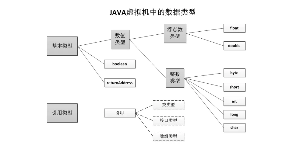 Java虚拟机是通过某些数据类型来执行计算的,数据类型可以分为两种:基本类型和引用类型,基本类型的变量持有原始值,而引用类型的变量持有引用值。