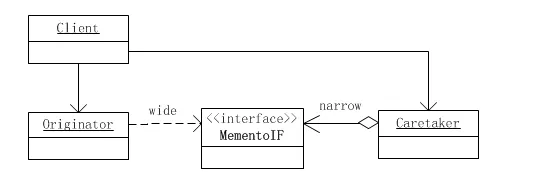 窄接口MementoIF,这是一个标识接口,因此它没有定义出任何的方法。