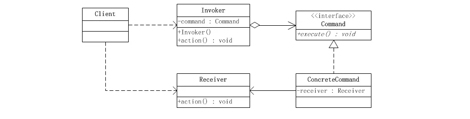 ● 接收者(Receiver)角色:负责具体实施和执行一个请求。任何一个类都可以成为接收者,实施和执行请求的方法叫做行动方法。