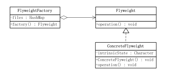 ● 享元工厂(FlyweightFactory)角色 :本角色负责创建和管理享元角色。本角色必须保证享元对象可以被系统适当地共享。当一个客户端对象调用一个享元对象的时候,享元工厂角色会检查系统中是否已经有 一个符合要求的享元对象。如果已经有了,享元工厂角色就应当提供这个已有的享元对象;如果系统中没有一个适当的享元对象的话,享元工厂角色就应当创建一个合适的享元对象。