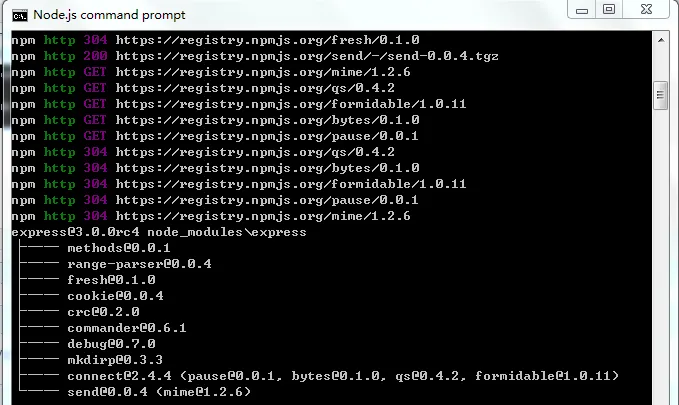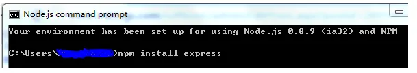 首先我们需要安装express模块,他是node开发web应用的mvc框架。安装express很简单,是使用npm命令(Node Package Manager)。点【开始】菜单,选择【所有程序】,找到【Node.js (x86)】,运行【Node.js command prompt】。命令行输入如下命令: