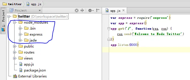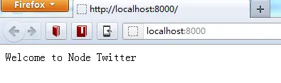 var express = require('express') var app = express() app.get('/', function(req, res) { res.send('Welcome to Node Twitter') }) app.listen(8000)