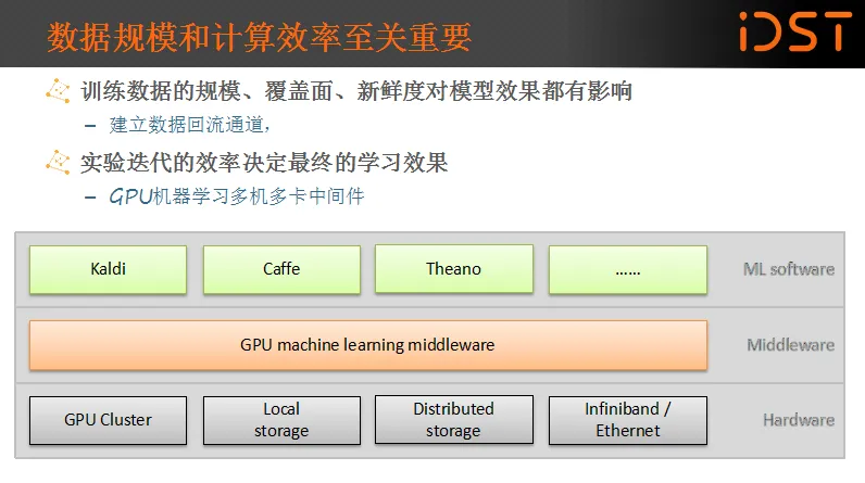 刚才讲的是语音识别大的框架,如果说难是非常难。因为必须把每一个细节都十分完美地解决,最后才能得到特别好的效果。但整体来看,并没有特别神奇的点,仅仅是在不同的深度学习的模型上进行调试,重要的地方就是迭代能力和数据量的大小。因此数据的采集和使用就变得尤为重要,所以机器学习远远不是只研究某个算法,对企业而言,真正好用的数据模型一定是经过大量的数据验证的。