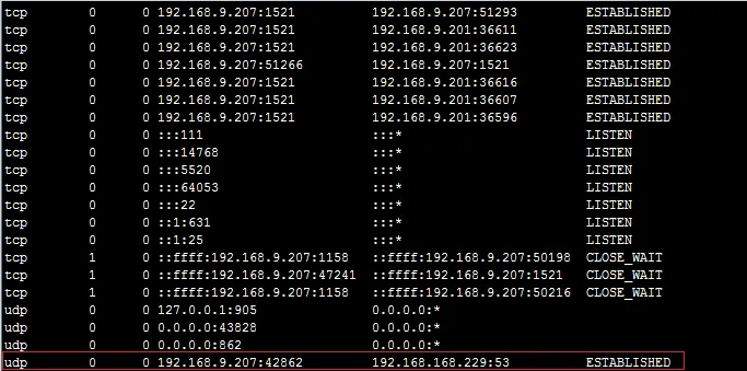 12、因为担心是他安装的数据库或者是数据有什么问题,所以我将应用连接我刚刚搭建的数据库,启动依旧很慢,基本确定了他昨天的数据库也没啥问题,是不是系统哪配置的不对?我用netstat看到了一条记录引起了我的注意,如下图所示:
