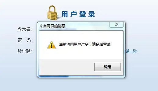 2011年铁道部推出了12306火车票预订网站, 可是因为访问者太多,经常崩溃。根本登录不了。网站访问高峰的时候,根本没办法登录成功, 一直会报错(如下图)