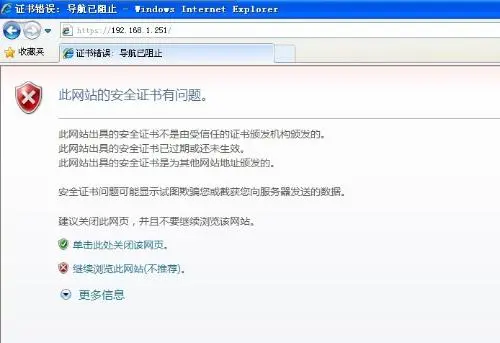 我们用浏览器打开HTTPS的网站,如果我们没有安装证书,通常页面会显示 "此网站的安全证书有问题",我们必须再次点"继续浏览此网站(不推荐)"才能查看页面信息. 如下图所示