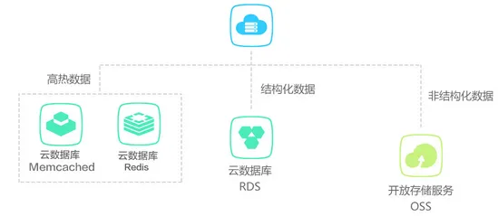 在数据类型多样的应用中,可将高热存取数据存储于缓存产品,如云数据库Memcached版 、云数据库Redis版,将图片等非结构化资源存储于对象存储 OSS,而将链接等结构化数据存储于RDS,实现对业务数据高效存取,并相应降低成本投入。
