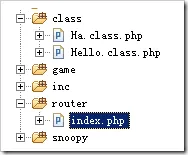调用某个文件夹目录下的index.php页面,假定现在所有模块使用单独的文件存放于class目录下,该目录与router平级,如下图所示:
